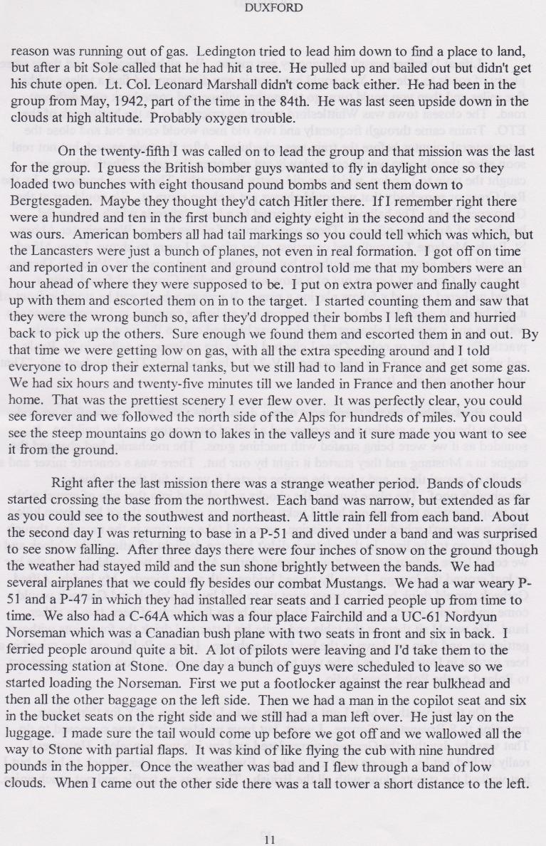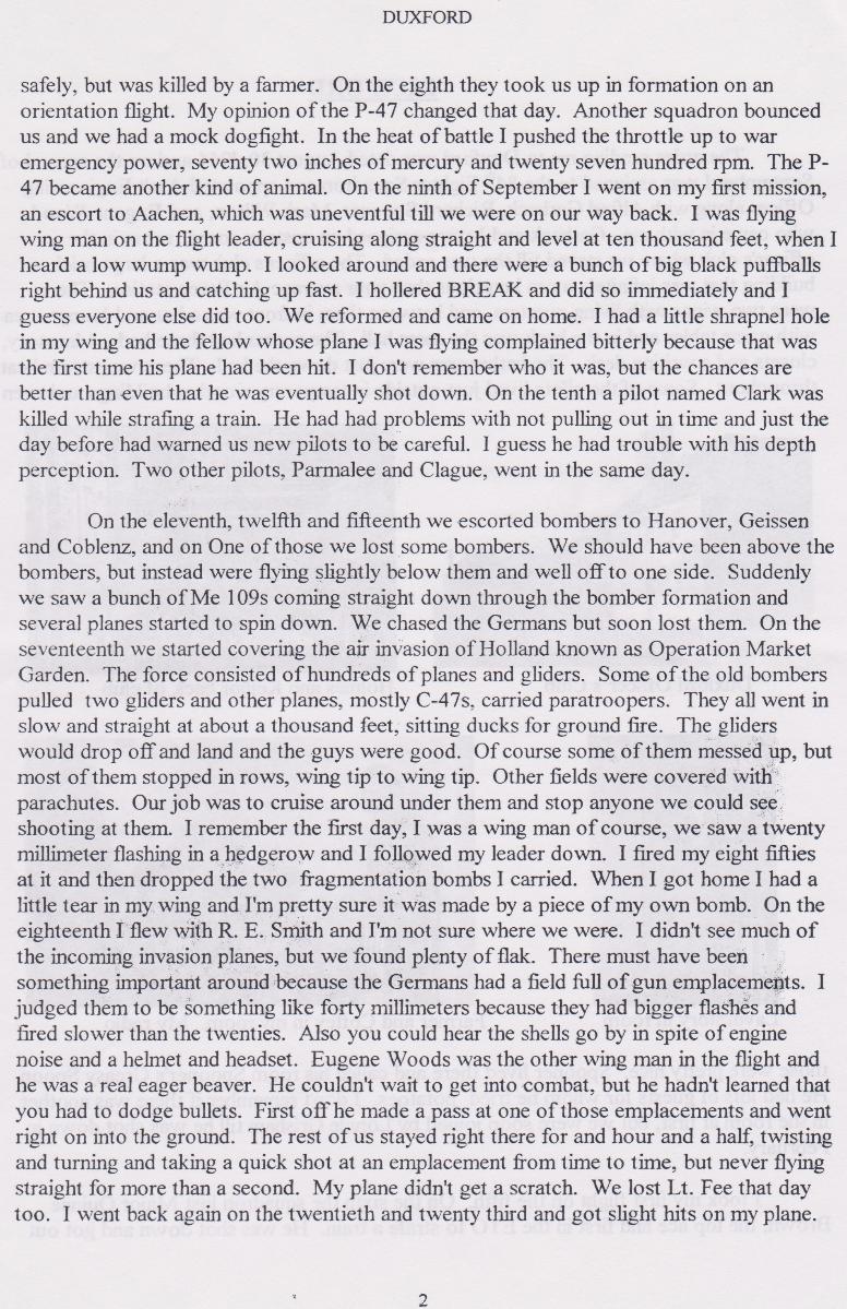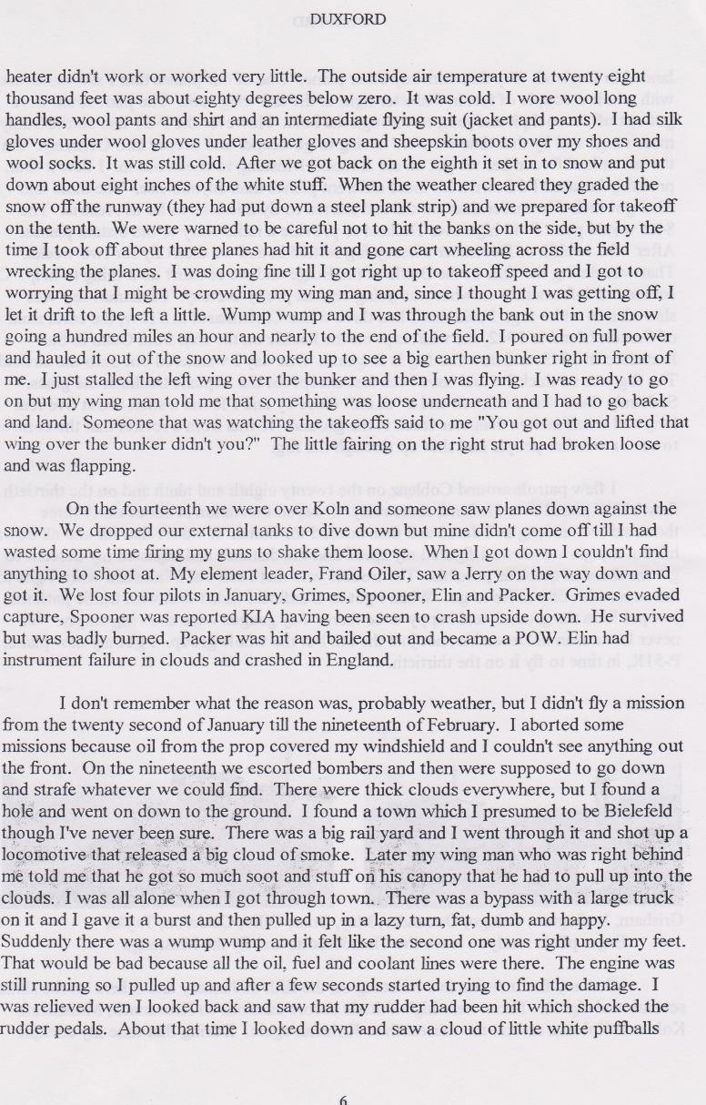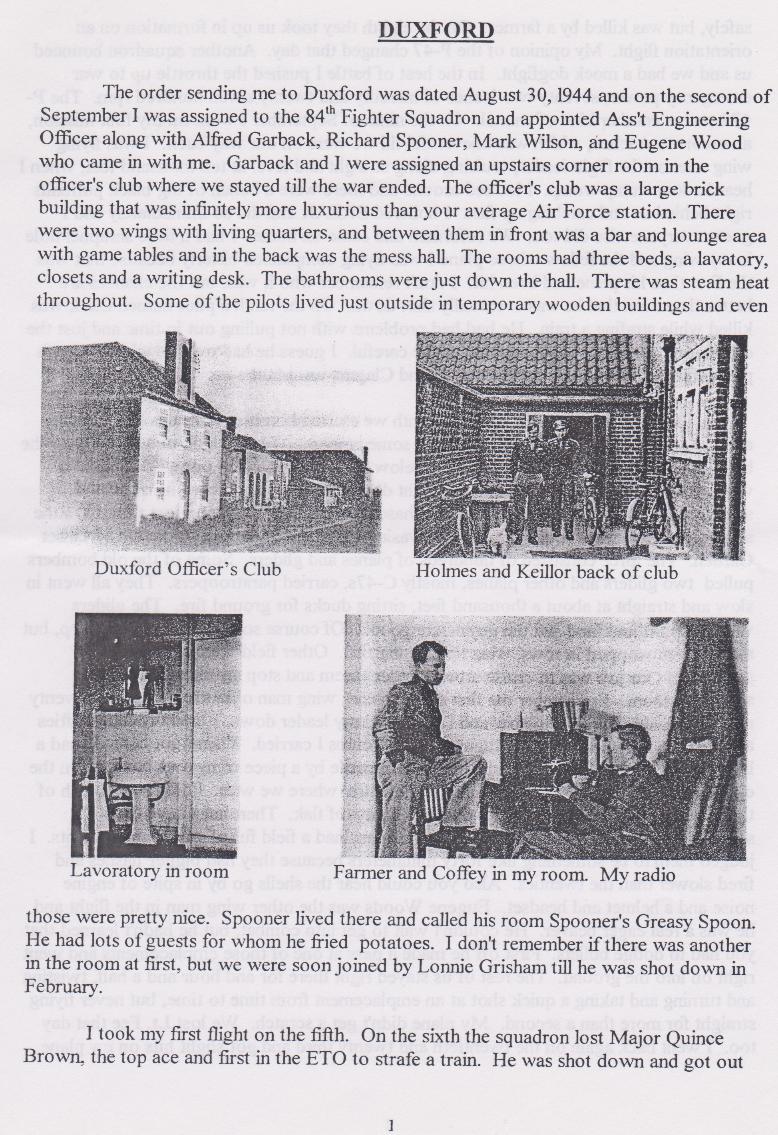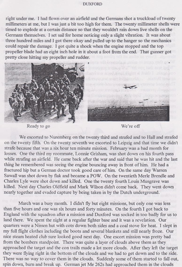 Duxford, Letters home, and his shoot down,