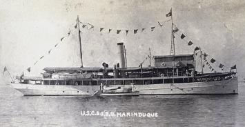 History of the USCGS Marinduque and the Coast Guard of the Philippines The Marinduque was steam powered with a length 132 feet, beam 23 feet, draft 10.2 Built in 1901 for the Philippine government at a cost of $67,673.42. In service 1905-1932 exclusively in Philippine Islands. Named for Philippine Island of Marinduque. One of the least-known military organizations which the United States has ever created operated was the Coast Guard of the Philippines. The historian's office of the US Coast Guard knows nothing of this organization which used the designation coast guard a dozen years before the stateside service was so identified upon the merger of the Revenue Cutter Service and the Lifesaving Service in 1915. Neither is the Naval Historical aware of the Philippine Coast Guard, even though naval personnel, including four 19th-century Naval Academy graduates, were heavily involved in the creation of the organization, and the Navy's military discipline system became an integral part of organization. In spite of this obscurity, this Coast Guard organization for a number of years operated a fleet of cutters and other vessels under the American flag in the waters of the Philippines. These vessels were staffed by American officers with merchant marine licenses who were members of a uniformed service that in time evolved into a true military service. This fleet carried out its unique missions during the adventurous period following the Spanish-American War when the United States was responsible for the administration of the archipelago of 2441 named and 4642 unnamed islands. Shortly thereafter, on 17 October 1901, the Philippine Commission, as the governing body of the Philippines, enacted legislation creating the Bureau of Coast Guard and Transportation under the general purview of the Department of Commerce and Police, one of a dozen or so major branches of the new government. The newly-established Bureau consisted of three sections, one of which was responsible for the operation of vessels, another for the operation of lights and navigational aids, and the third for the creation and construction of lights and navigational aids. In its operation of vessels the Bureau was charged with cooperating with customs in the collection of revenues and the prevention of smuggling, with various governmental entities at the national and provincial level in transporting officials and supplies, with the post office in carrying mails, and with the Constabulary in transporting police and prisoners. During 1902-03, a fleet of 17 seagoing cutters, each of 41l-gross tons, was built for the Philippine Coast Guard, all in Shanghai except for two built in Uraga, Japan. These ships, each of which was named for a province of the Philippines, had wooden hulls, and were 132 feet in length, 23 feet in beam, and ten fleet in depth. They were somewhat underpowered, with only 300-horsepower reciprocating steam engines which propelled them at a speed of eight knots, not entirely adequate for chasing smugglers or similar responsibilities of a revenue cutter. Several large seagoing launches and tenders were also built for or acquired by the Bureau. In addition to these assignments to regular routes, cutters were also assigned to special duties or local areas. In 1904 three were assigned to the Manila headquarters of the Coast Guard: the Mindanao, the Palawan, and Marinduque. Other special assignments included the Romblon and Corregidor with the lighthouse establishment; the Tablas on customs duty around the Sulu Islands and Paragua (which was renamed Palawan in 1905), locations that were favorite haunts of smugglers; and the Luzon, transporting a survey board whose members were looking for a penitentiary site. Other vessels, including launches, lighthouse tenders and cable ships, were also assigned to special duties rather than to routes; several of the bigger seagoing launches, as large as 300 tons, were assigned to working with the Constabulary. The Bureau also generated considerable revenue through its 1400-ton marine railway and machine shops which were constructed in 1905 on Engineer island at the mouth of the Pasig River in Manila. These facilities were widely utilized by outside clients such as the US Army and various entities of the insular and provincial governments, and in some years could actually show an operating profit. Apparently, the 1400-ton rating of the marine railway was unrealistic, however; the Bureau was embarrassed in 1913 when its own ship, the Marinduque of considerably smaller tonnage, was left stranded when the wheeled cradle fell off the track while the ship was being undocked. After a week of hard work, the cutter was eventually refloated, and the cradle put back onto its track. Although the organization now had a definite military orientation, it generally did not participate in armed actions involving the US Army or the Philippine Scouts. When the Samar took Brigadier General John J. Pershing from Zamboanga to the island of Jolo in 1911 for a pacification campaign against the Moros, it was in his capacity as Governor-General of the Moro Province, rather than as a military commander. The troops for this campaign were transported in several of the Army's oceangoing steam launches and small transports. However, the native Constabulary, which was a police force that was organized and trained under predominately American officers much like an army, often traveled on the vessels of the Coast Guard. For example, the seagoing launch Ranger and the cutter Marinduque in 1903 carried troops of this organization in pursuit of two renegade Constabulary officers who had turned to piracy in the Sulu Sea. Little is known of the fleet of cutters after 1913. The Balabac had been sold that year to the government of British North Borneo, the Masbate had been lost much earlier, and the Leyte had been dropped from the vessel roster for unknown reasons - leaving 14 ships. Two of the remaining ships, the Romblon and Ma
