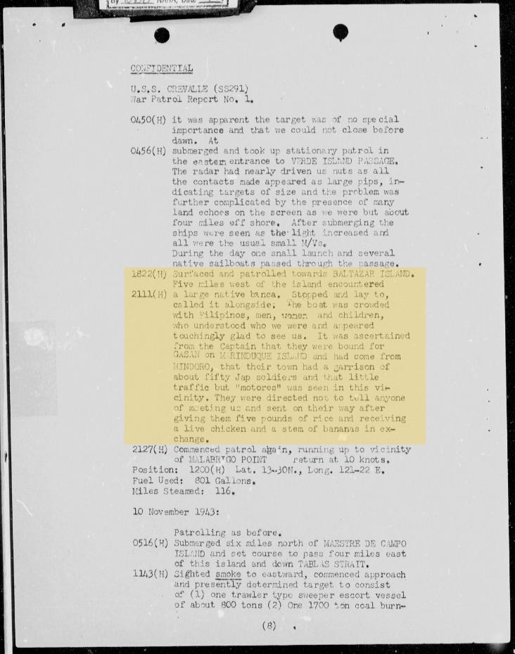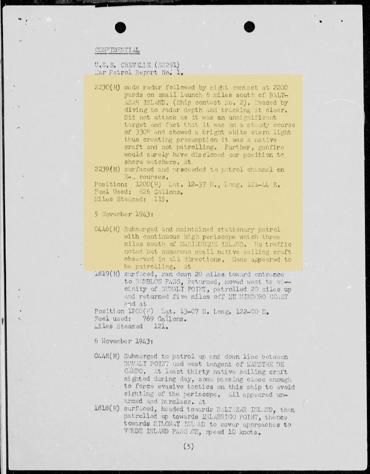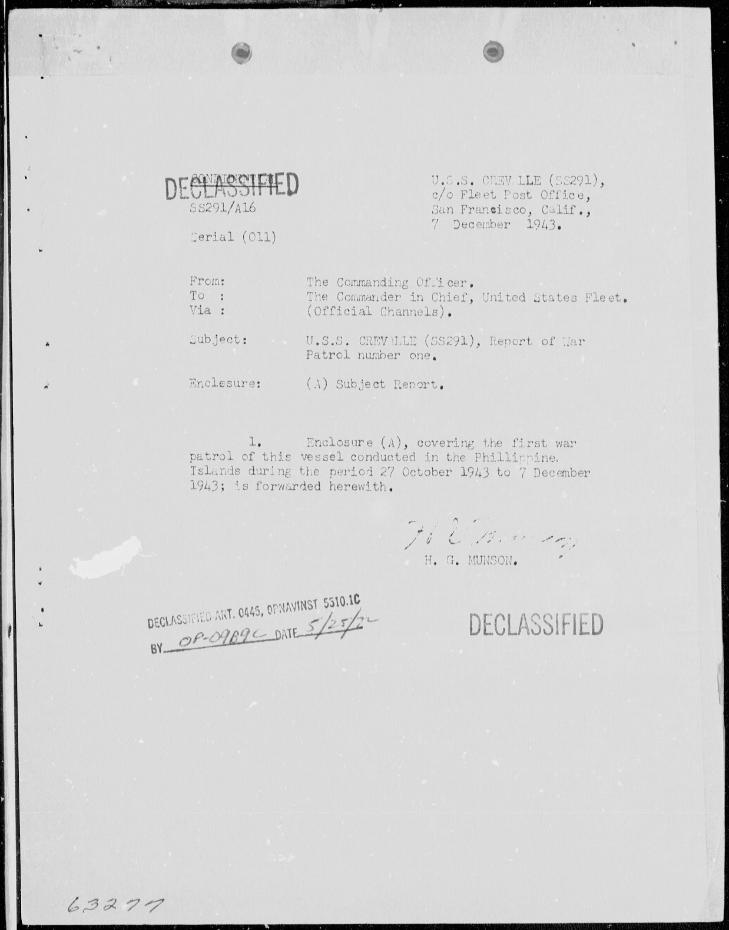 USS CREVALLE SS-291 War Patrol Report 1 October 27 1943 to December 7 1943