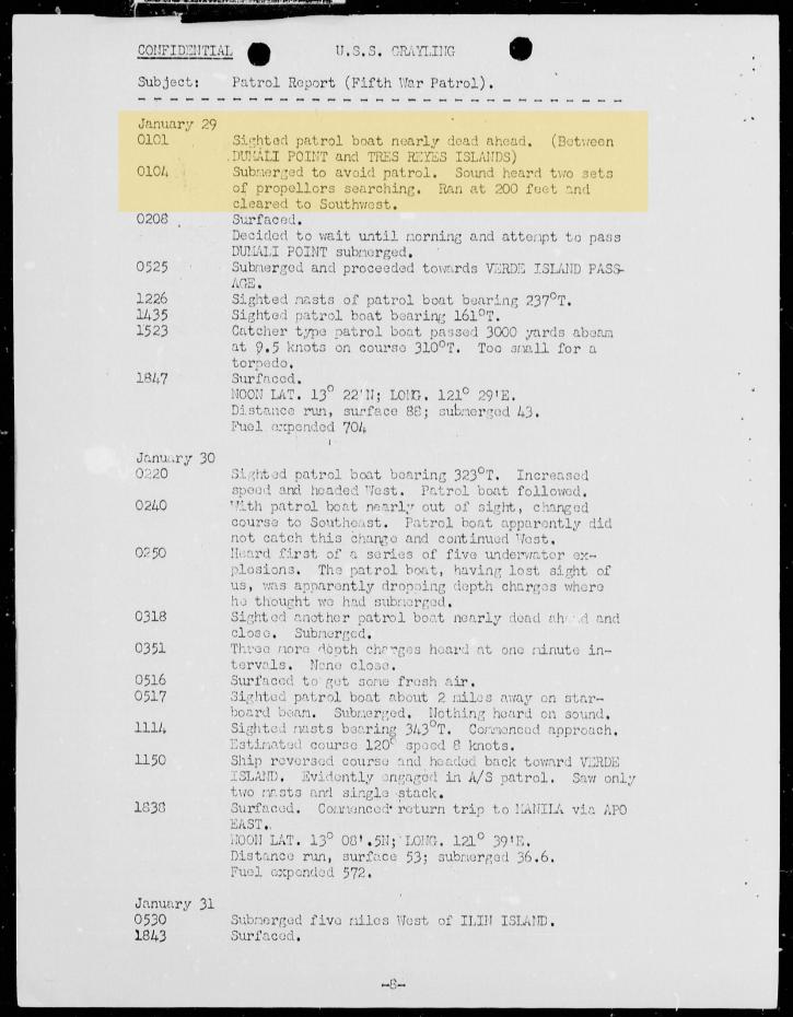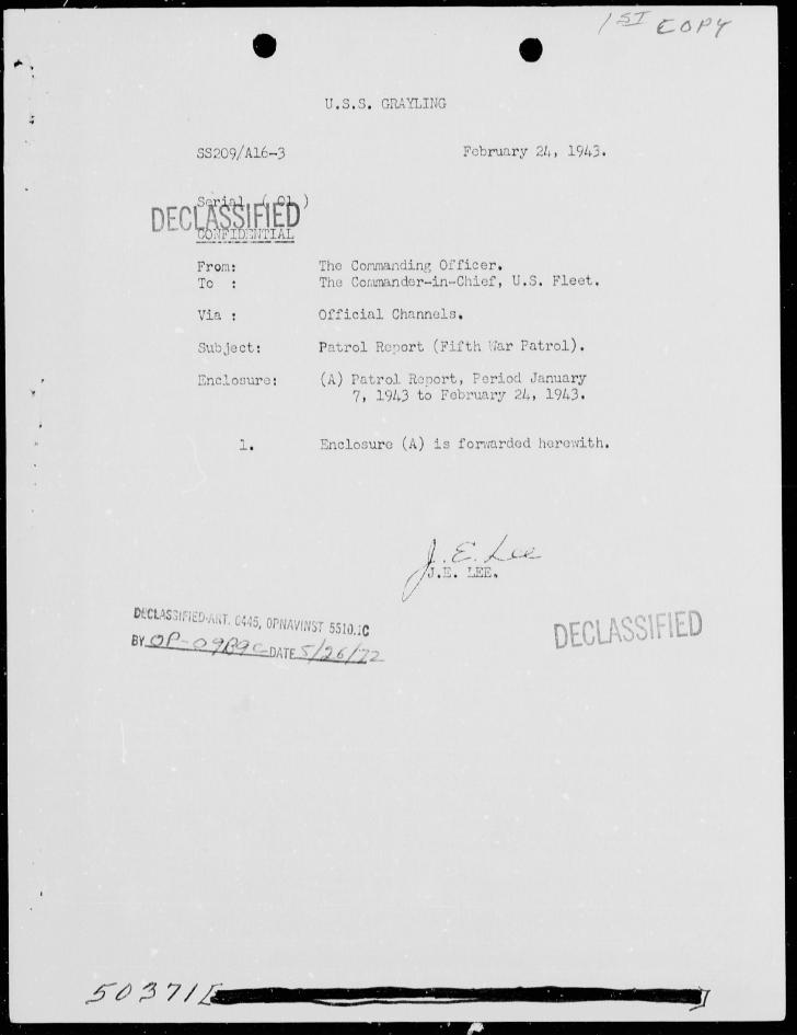 USS GRAYLING SS-209 5th War Patrol Report January 7 1943 to February 24 1943