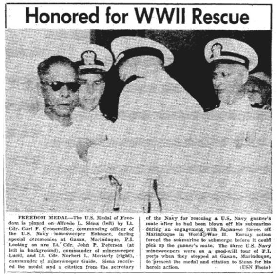 later honored by the U.S. Navy and presented with the U.S. Medal of Freedom.