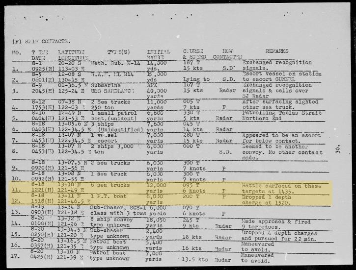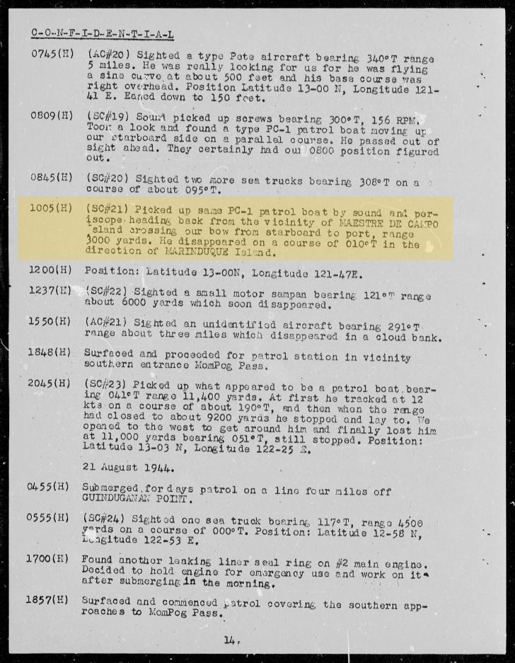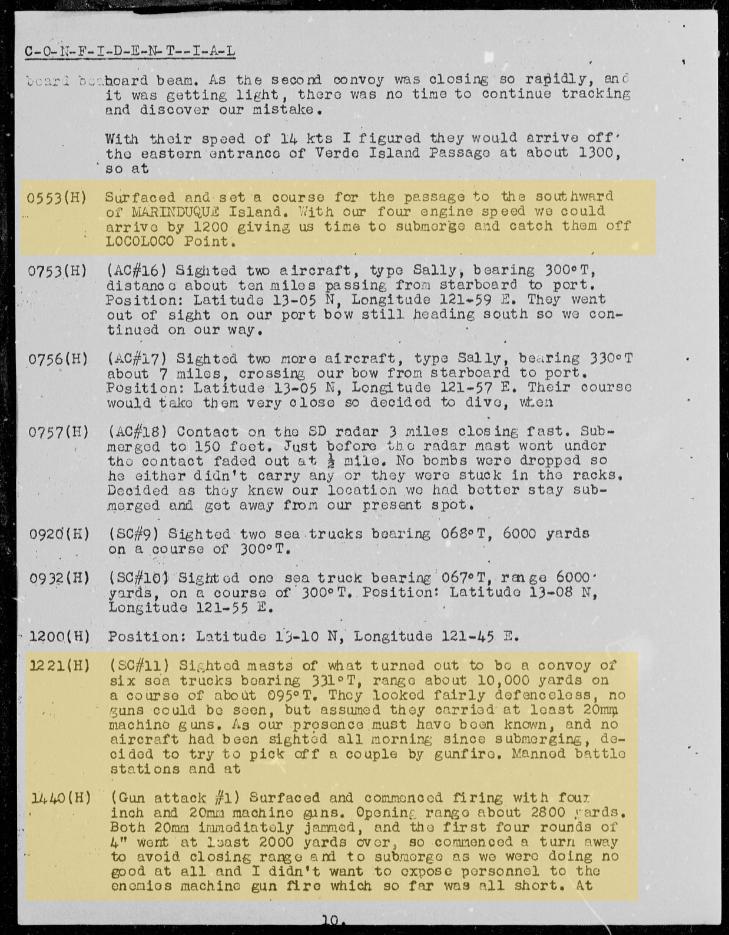 The sixth patrol was conducted in the Sibuyan Sea area and off the west coasts of