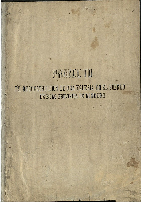 I was able to locate: Proyecto De Reconstrucction De Una Ygelsia En El Pueblo De Boac Provincia De Mindoro (Reconstruction Project of a Church in the Town of Boac, Mindoro Province).
