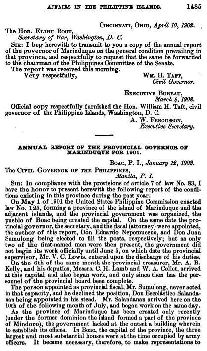 A detailed report on life in Marinduque 125 years ago.