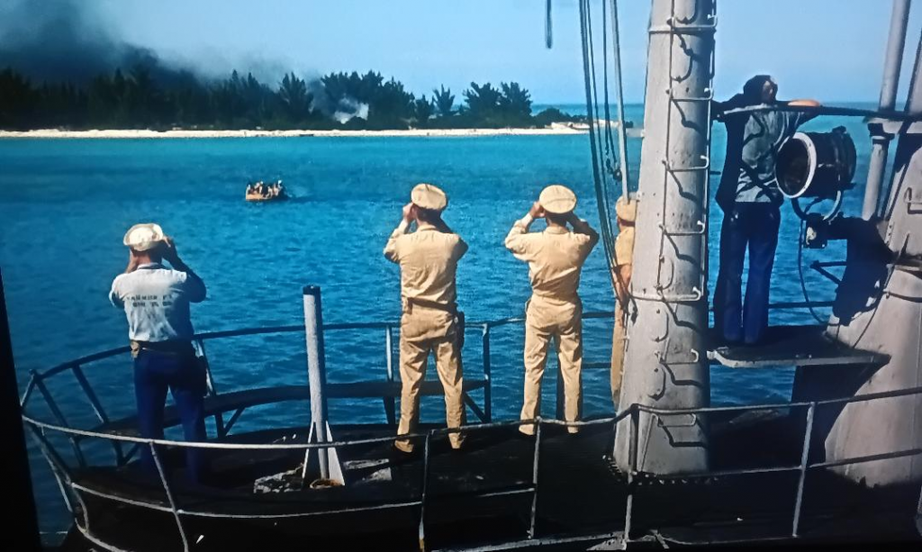 Just after noon at 12:21pm the Gunnel spotted a convoy of six vessels to the South of Marinduque. At 2:40pm the Gunnel surfaced and started firing on the convoy with it’s deck guns, two 20mm machine guns and a 4” deck gun. Both machine guns jammed and the 4” gun was overshooting. To avoid unexpected return fire from the convoy the Gunnel cleared it deck and dived.