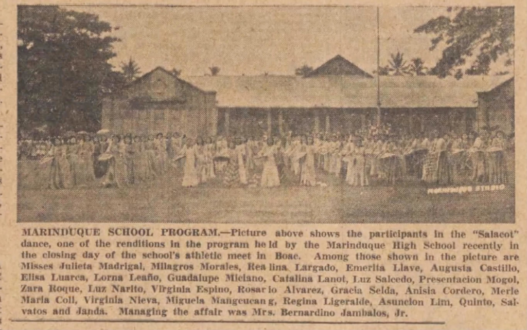 Julieta Madrigal, Milagros Morales, Realina Largado, Emertia Llave, Augusta Castillo, Elisa Luarca, Lorna Leano, Guadalupe Miciano, Catalina Lanot, Luz Salcedo, Presentacion Mogol. Zara Roque, Luz, Narito, Virginia Espino, Rosario Alvarez, Gracia Selda, Anisia Cordero, Merle Maria Coll, Virginia Nieva, Miguela Mangcucang, Regina Ligeralde, Asuncion Lim, Salvatos and Janda Quinto